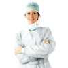 Bata em polipropileno spunbonded de 20 gr/m2, sem bolsos, com elásticos nas mangas.
